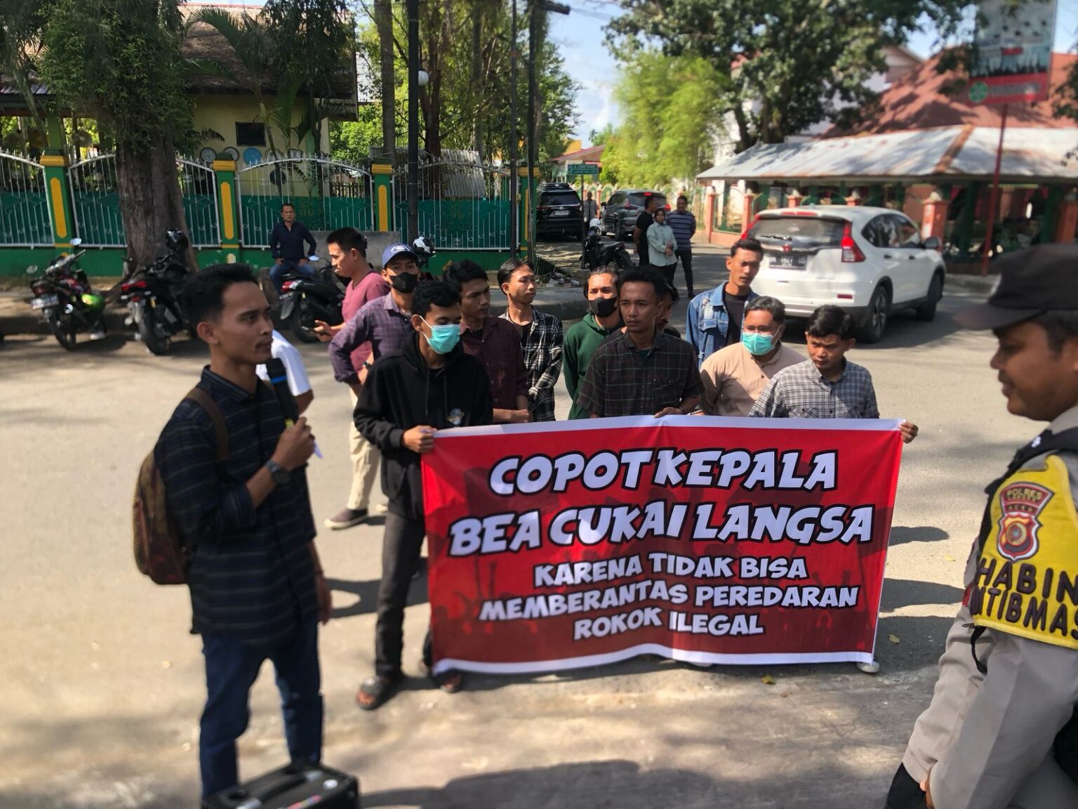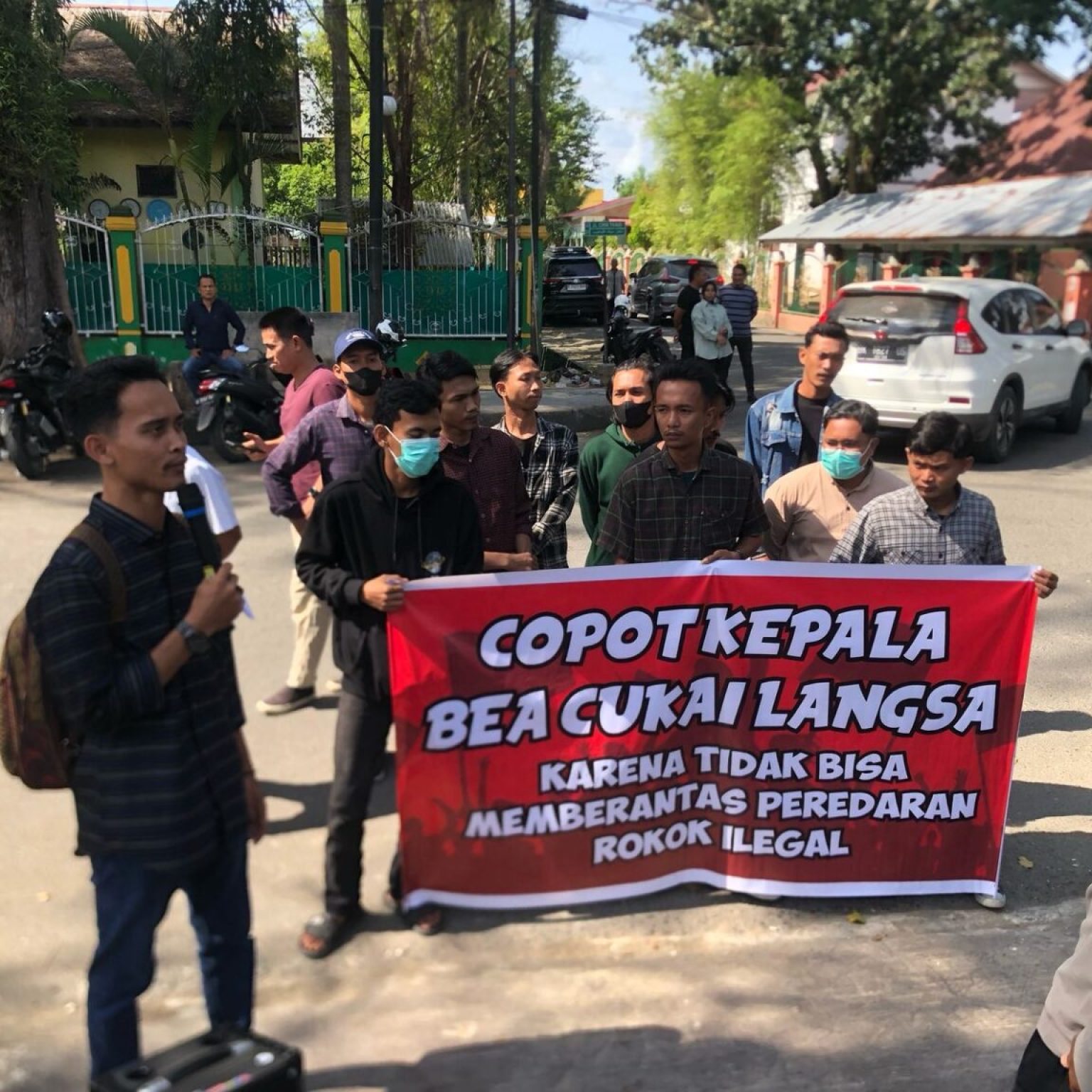 Puluhan masyarakat bersama LSM Pusat Analisis dan Observasi Birokrasi (PANDORA) melakukan demo di depan Kantor Bea Cukai Langsa, terkait transparansi dalam penanganan barang ilegal, utamanya rokok ilegal, yang sampai sekarang ini masih banyak beredar di wilayah Langsa. Kamis (20/02/2025).