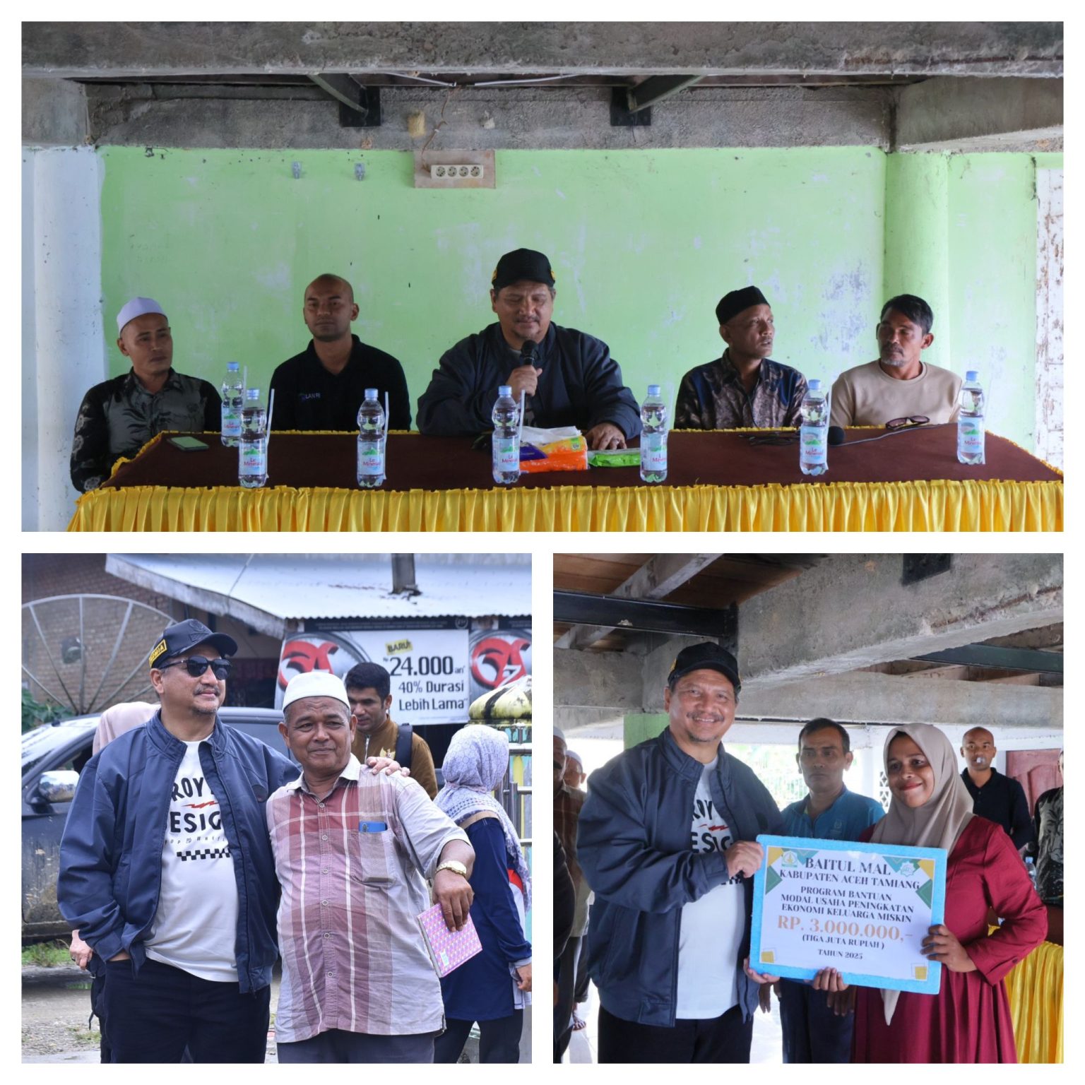 Sebagai penutup, Bupati Armia bersama Baitul Mal Kabupaten Aceh Tamiang menyerahkan sejumlah bantuan berupa santunan modal usaha bagi masyarakat kurang mampu, santunan untuk guru ngaji, serta bantuan bagi warga miskin, sebagai bentuk dukungan terhadap peningkatan kesejahteraan masyarakat kampung.