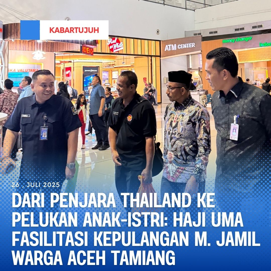 Jakarta, 25 Juli 2025 – Anggota DPD RI asal Aceh, H. Sudirman atau yang akrab disapa Haji Uma, kembali menunjukkan kepeduliannya terhadap warga Aceh di luar negeri. Kali ini, ia memfasilitasi langsung proses pemulangan M. Jamil, warga asal Manyak Payed, Aceh Tamiang, yang sebelumnya menjalani hukuman penjara selama 1 tahun 1 bulan di Thailand.