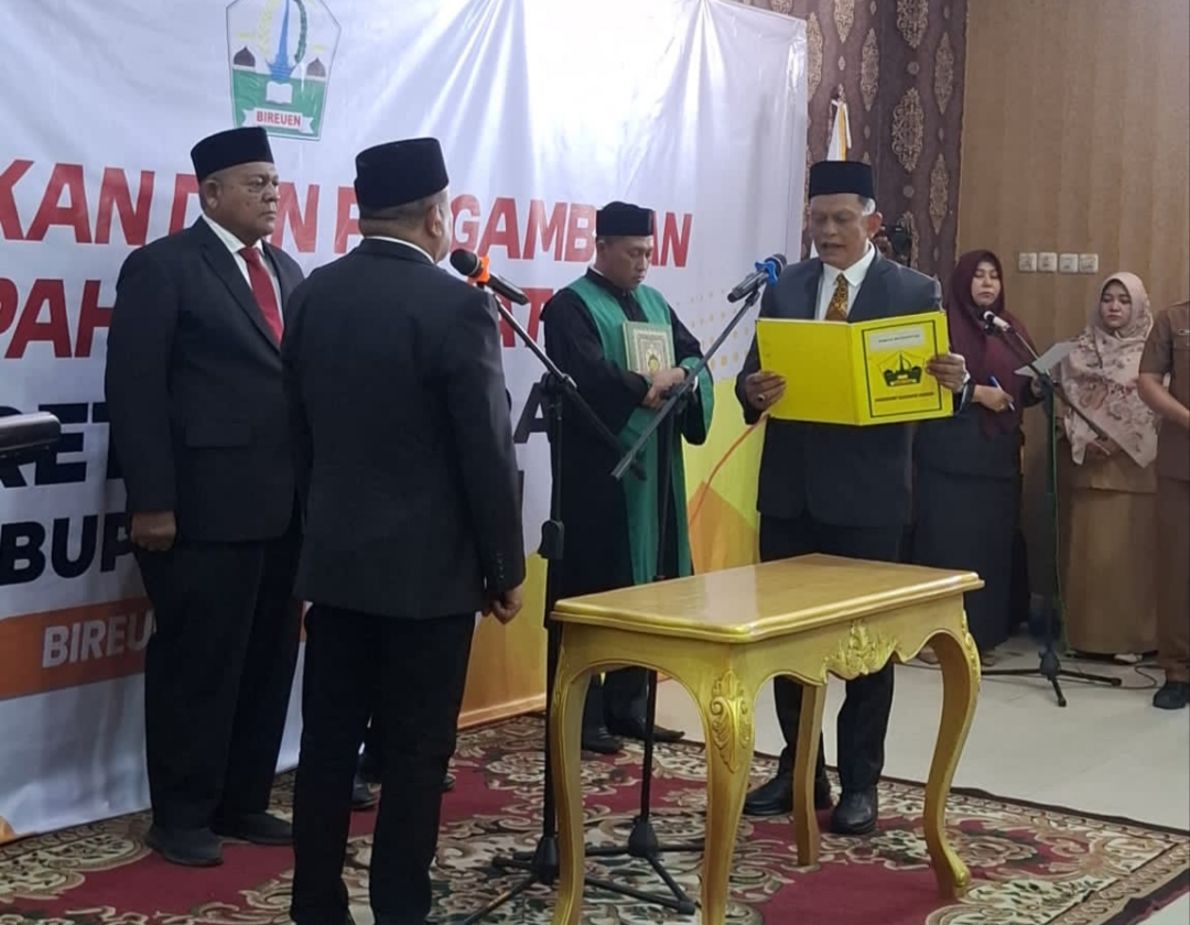 BIREUEN — Ismunandar resmi dilantik sebagai Sekretaris Daerah (Sekda) Kabupaten Bireuen oleh Bupati Mukhlis, Senin (20/4/2026), di Oproom Setdakab Bireuen. Pelantikan ini menjadi momentum penting dalam memperkuat kinerja birokrasi setelah melalui proses seleksi terbuka yang berlangsung kompetitif dan transparan.