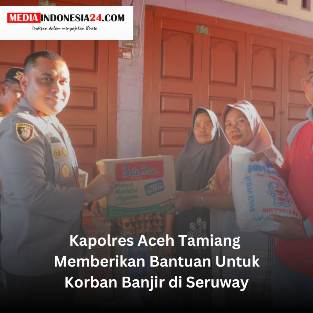 Kuala Simpang – Mediaindonesia24.com. Kapolres Aceh Tamiang AKBP Muliadi memberikan bantuan berupa sembako kepada korban banjir di Desa Muka Sungai Kuruk dan Gelung, Kecamatan Seruway, Kabupaten Aceh Tamiang, Selasa, 15 Oktober 2024.