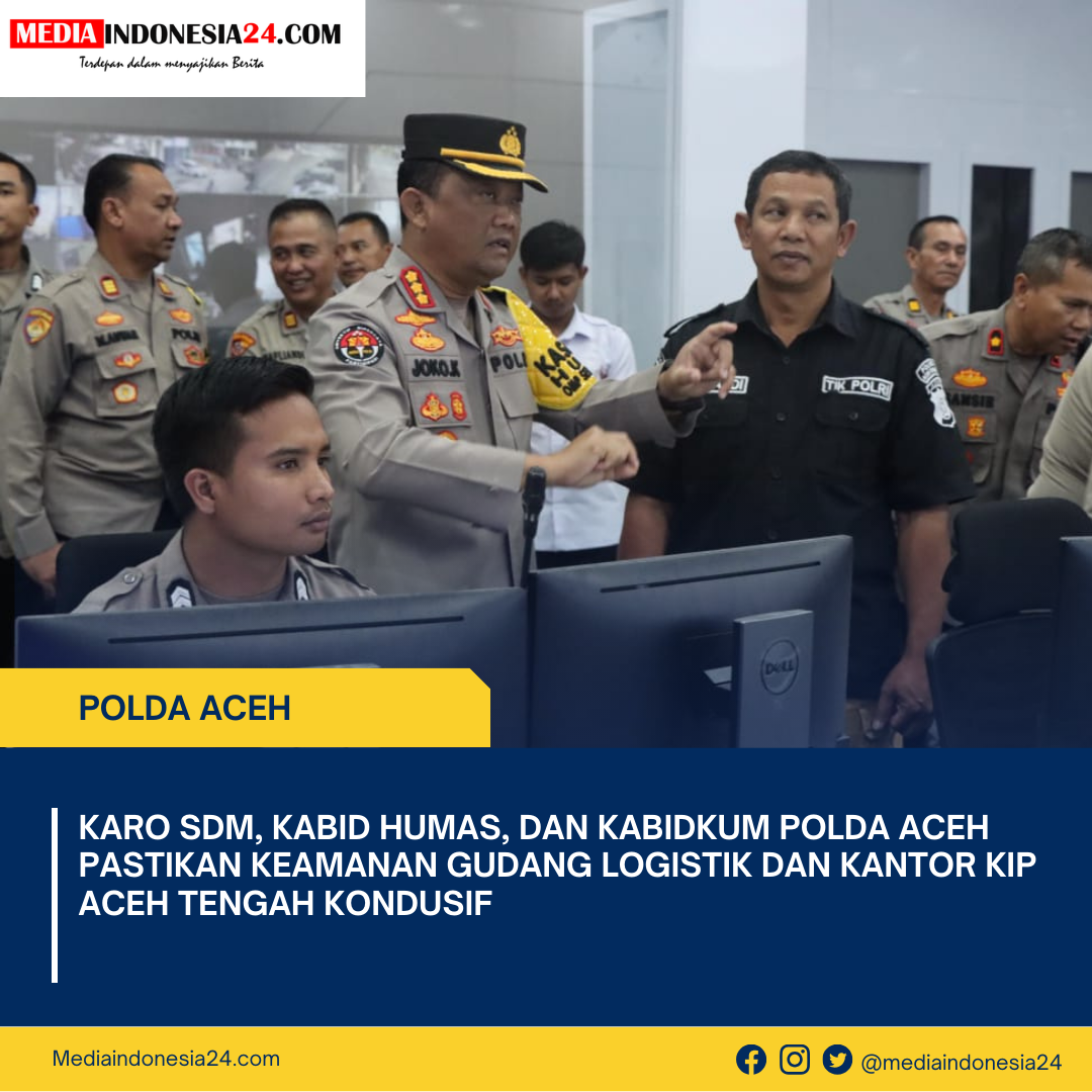 “Polda Aceh berkomitmen untuk mewujudkan keamanan dan ketertiban di seluruh wilayah Aceh dengan selalu mengedepankan pendekatan preventif dan humanis,” tutup Joko.Selain meninjau gudang logistik dan kantor KIP, Karo SDM, Kabid Humas, dan Kabidkum juga meninjau Command Center Polres Aceh Tengah.