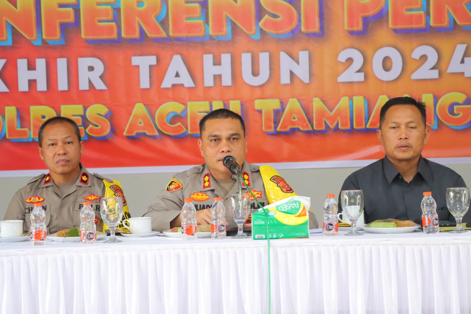 Kapolres mengungkapkan berbagai pencapaian yang di raih oleh Polres Aceh Tamiang dalam tahun 2024 , Berikut pencapaian Polres pada Tahun 2024 pada konferensi pers:
