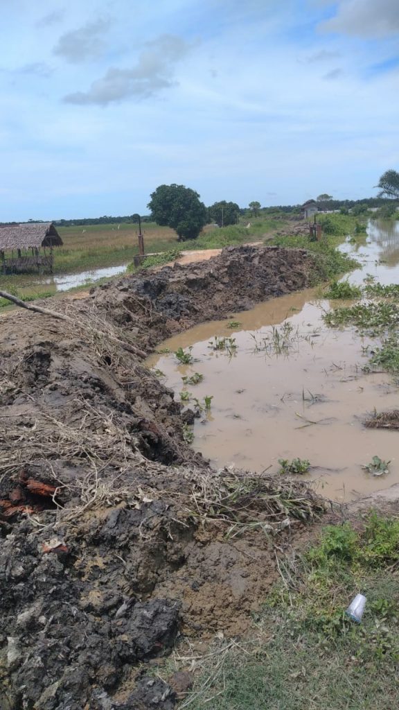 Dan membantu nimbun tanggul pemukiman & lahan sawah pasang surut kampung cinta raja.