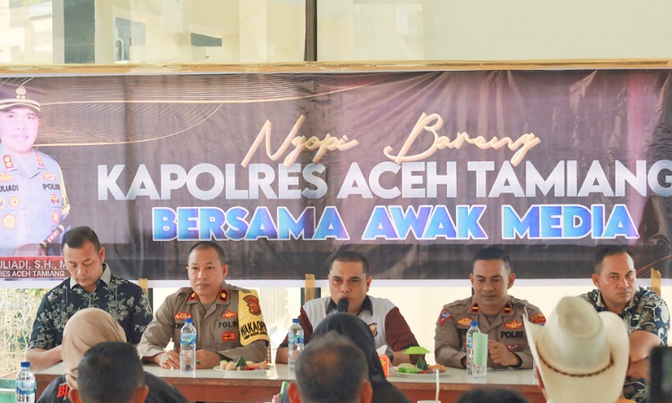 Kapolres AKBP Muliadi didampingi Waka Polres Aceh Tamiang Kompol Ichsan, Kasat Reskrim AKP Rifki Muslim, Kasat Narkoba AKP M. Nazir dan KBO Satlantas Polres Aceh Tamiang Ipda Indera, Mengajak Insan Pers dalam Kegiatan Ngopi Bareng ini sebagai sarana komunikasi Polri dengan wartawan wilayah Aceh Tamiang untuk lebih mempererat tali silaturrahmi dan menjalin sinergitas antara pihak Kepolisian dengan Awak Media.