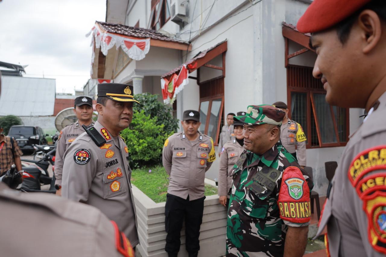Lhokseumawe | Mediaindonesia24- Pamatwil Operasi Mantap Praja Seulawah 2024 Polda Aceh, Kombes Joko Krisdiyanto bersama Kapolres Lhokseumawe AKBP Henki Ismanto, memastikan pergeseran kotak suara dari PPS ke KPPS aman dan kondusif.