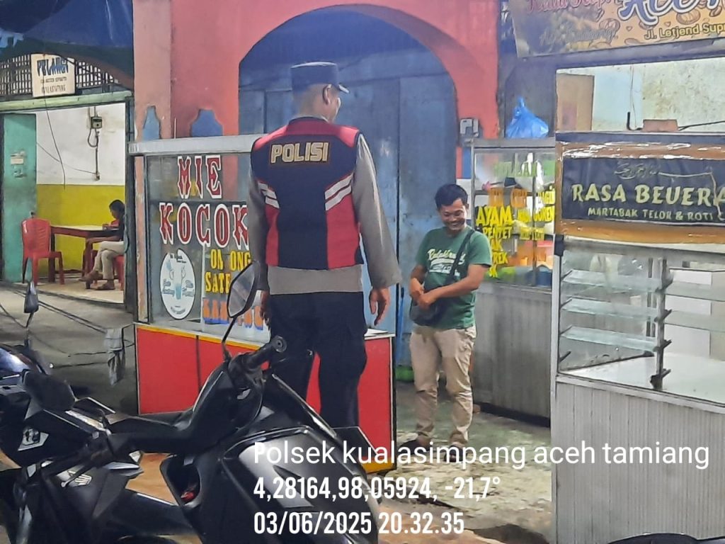 Aceh Tamiang – Dalam rangka menjalin komunikasi yang erat dan mendekatkan diri dengan masyarakat serta upaya mencegah terjadinya gangguan Kamtibmas, personil Polsek Kuala Simpang Jajaran Polres Aceh Tamiang melaksanakan patroli dialogis diwilayah hukumnya. Rabu (02/06/2025).