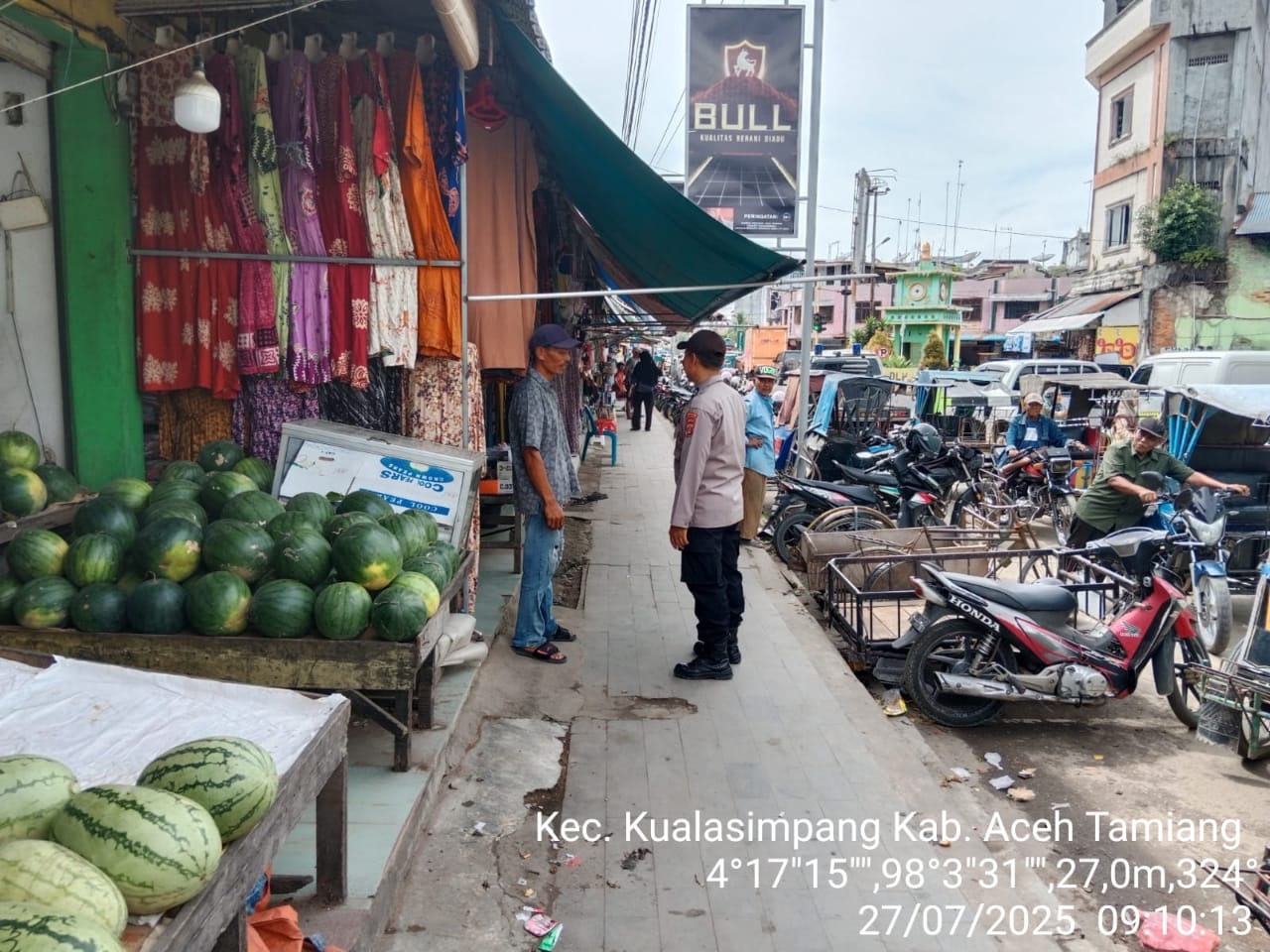 Aceh Tamiang – Dalam rangka menjalin komunikasi yang erat dan mendekatkan diri dengan masyarakat serta upaya mencegah terjadinya gangguan Kamtibmas, personil Polsek Kuala Simpang Jajaran Polres Aceh Tamiang melaksanakan patroli dialogis diwilayah hukumnya. Minggu (26/07/2025).