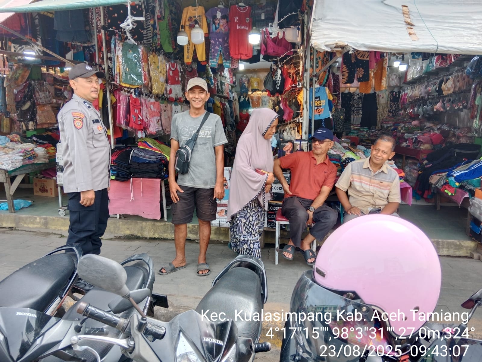 Pada kesempatan tersebut, personil Polsek Kuala Simpang menyapa langsung warga masyarakat yang sedang berkumpul dan beraktivitas serta saling bertukar informasi terkait pemeliharaan kamtibmas dan juga menyampaikan imbauan dan pesan kamtibmas.