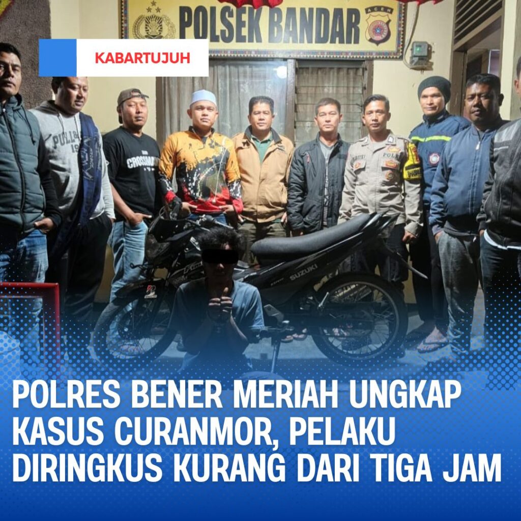 Redelong — Kepolisian Sektor (Polsek) Bandar Polres Bener Meriah, kembali berhasil mengungkap kasus pencurian kendaraan bermotor (curanmor). Seorang pelaku berhasil diamankan kurang dari tiga jam setelah kejadian. Dalam pemeriksaan awal, pelaku mengakui telah melakukan aksi serupa lebih dari satu kali.