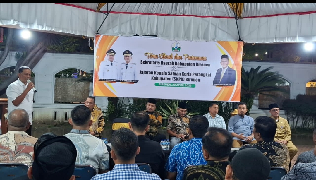 BIREUEN — Baru beberapa jam setelah dilantik, Ismunandar langsung bergerak cepat mengonsolidasikan jajaran Pemerintah Kabupaten Bireuen. Dalam temu akrab dan rapat koordinasi bersama satuan perangkat kabupaten, Senin (20/4/2026) malam, ia menegaskan perubahan pola kerja birokrasi yang lebih disiplin, responsif, dan tidak bergantung pada pimpinan daerah.